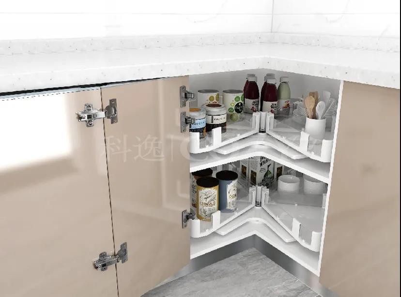 厨房装修不可避免会遇到转角处,而传统橱柜安装困难,使用不便,导致大量的空间浪费。科逸采用专利技术成功研发出新型转角翻转式橱柜,成功克服这一难题。